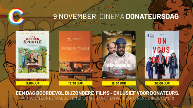 Speciaal voor onze donateurs vertonen we op zondag 9 november films met iets lekkers! Donateurs kunnen elkaar ontmoeten in onze gezellige Cinema Foyer en onder het genot van een drankje de films bespreken.